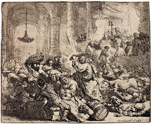 Rembrandt (1606-1669) Jesus driving the money-changers from the Temple etching, state i/ii, 1635